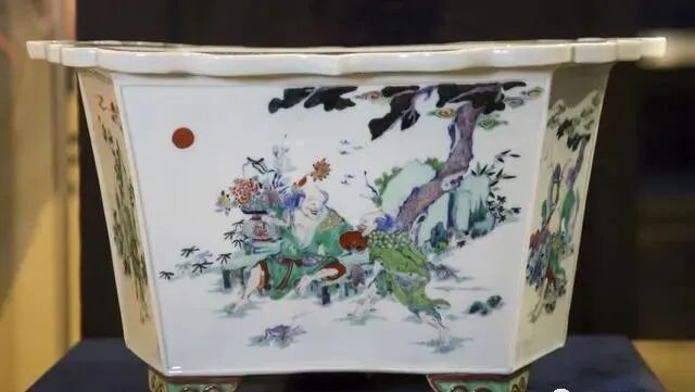 清康熙 斗彩合和二仙纹六棱菱花口花盆