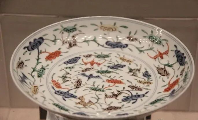 清康熙 五彩蝙蝠灵芝纹盘