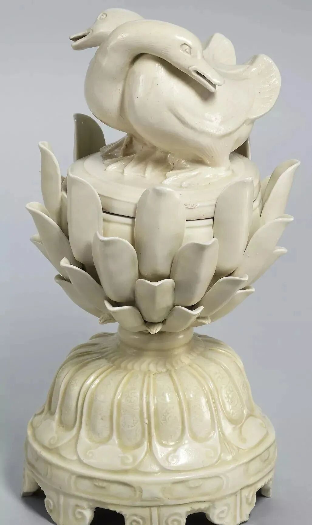 北宋 定窑鸳鸯钮莲座带盖香熏(372.5万)