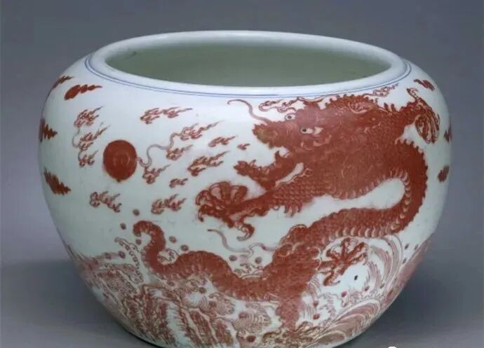 清康熙釉里红云龙纹钵缸