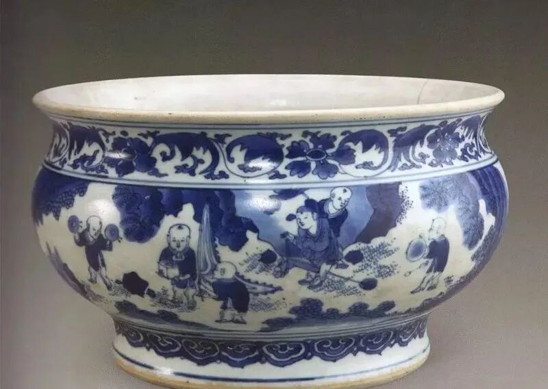 清顺治青花婴戏图香炉