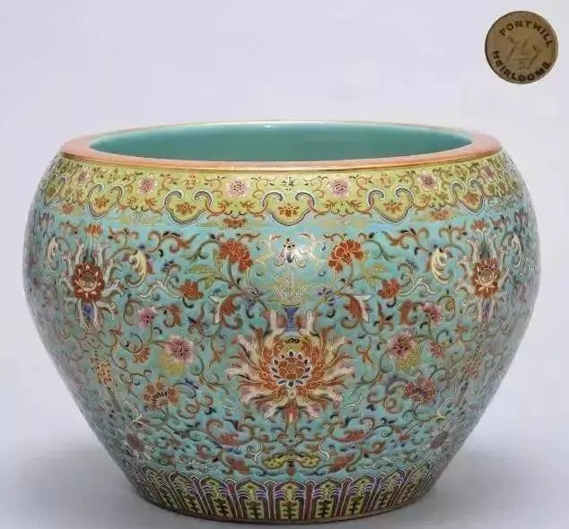清乾隆 松石绿地粉彩描金缠枝莲卷缸
