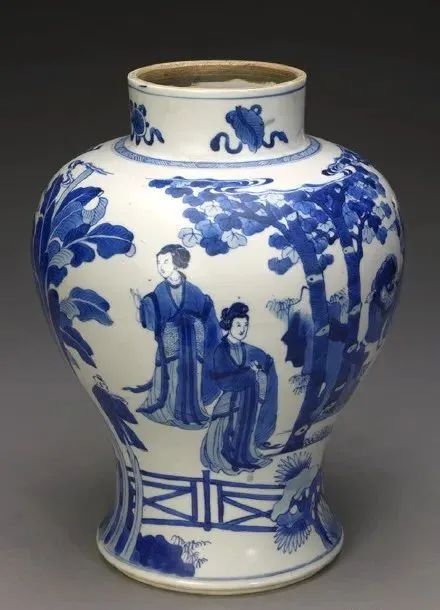 清康熙 青花四妃十六子图罐