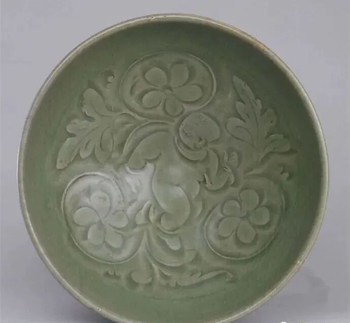 宋耀州窑青釉刻花婴戏纹碗