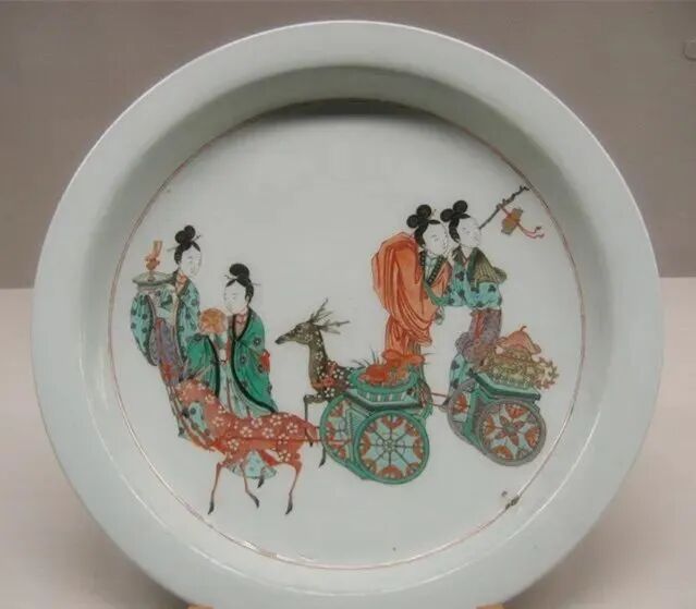 清康熙五彩麻姑贺寿盘