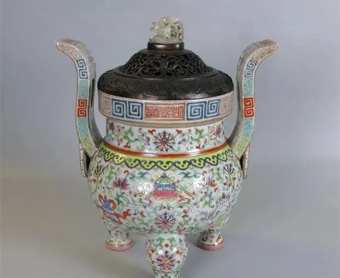 清嘉庆粉彩番莲托八吉祥纹香炉