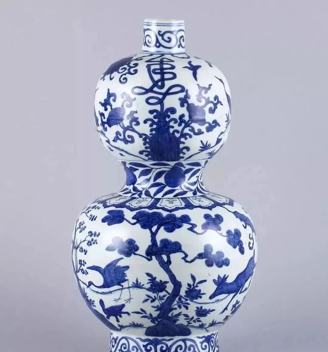 明嘉靖 青花福禄捧寿纹葫芦瓶