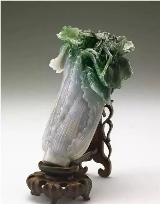 还有蛐蛐,像台北故宫的玉雕珍宝“翠玉白菜”,这件与真实白菜相似度几乎百分百的作品,仔细看看菜叶上停留的两只昆虫,它们可是寓意多子多孙的螽斯和蝗虫。