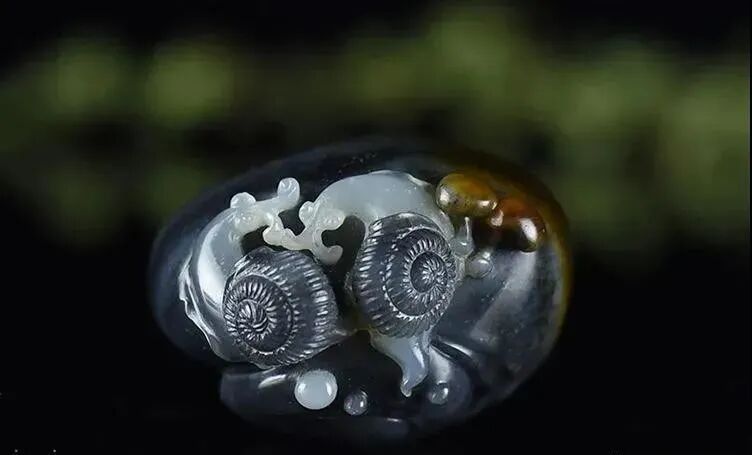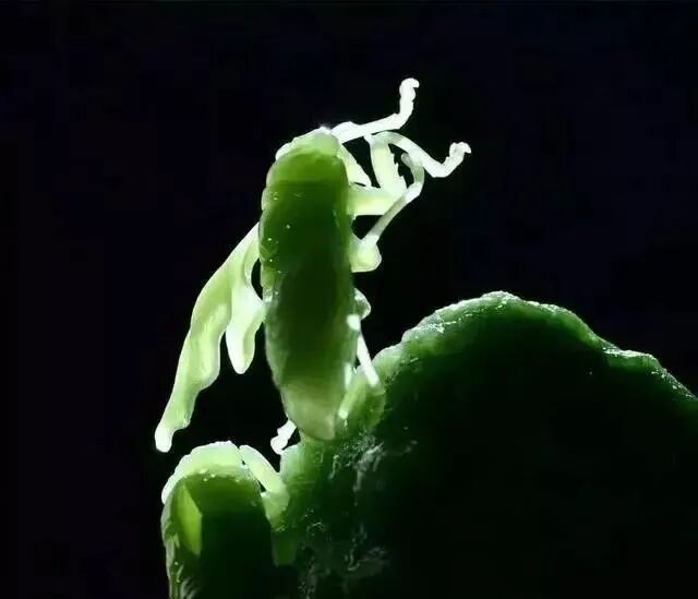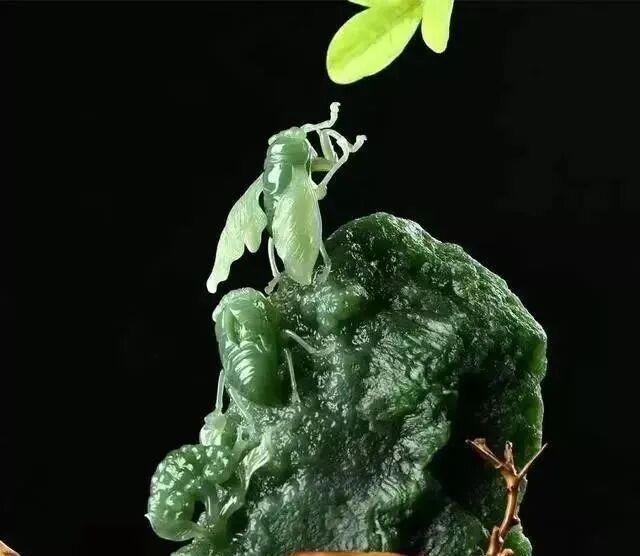 玉雕中的昆虫,比较常见的有蝉、螳螂、蝈蝈,甲虫、蜗牛、蜻蜓、蝴蝶等等。