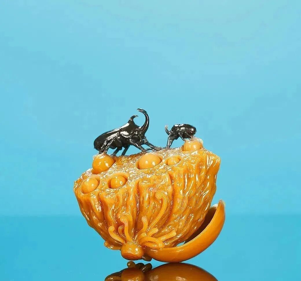 玉雕中常见甲虫,大概与“甲”这个字有些关系。甲,在中国传统的天干地支中排行第一,通常也用来表示“第一”之意。
