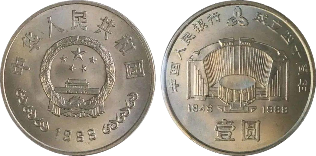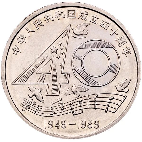建国40周年纪念币,这枚币面值1元,发行量为2100万枚,量很多,价格不会很高,但是与面值相比,涨了足足60倍。