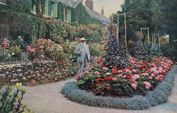 1905莫奈在吉维尼家中花园,时年65岁