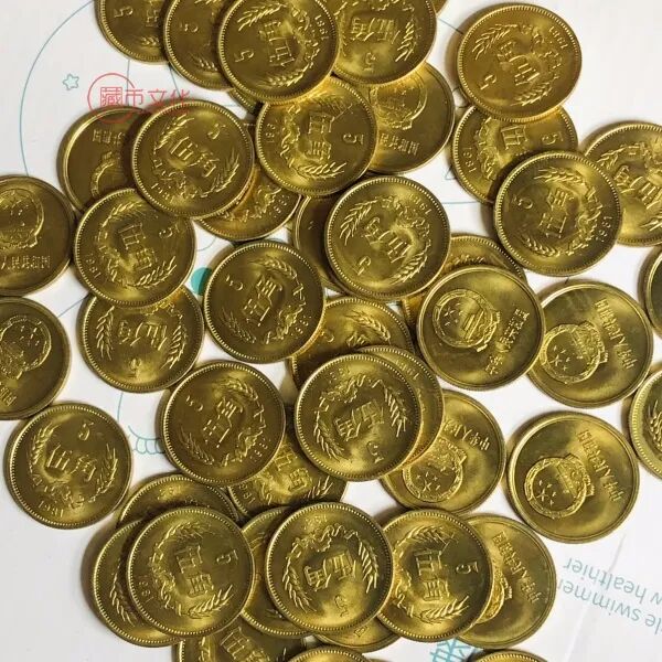 长城币5角是中国发行的第一枚金色5角硬币,而且它直径很大,比梅花5角硬币要大一圈,实物非常好看,金灿灿的!
