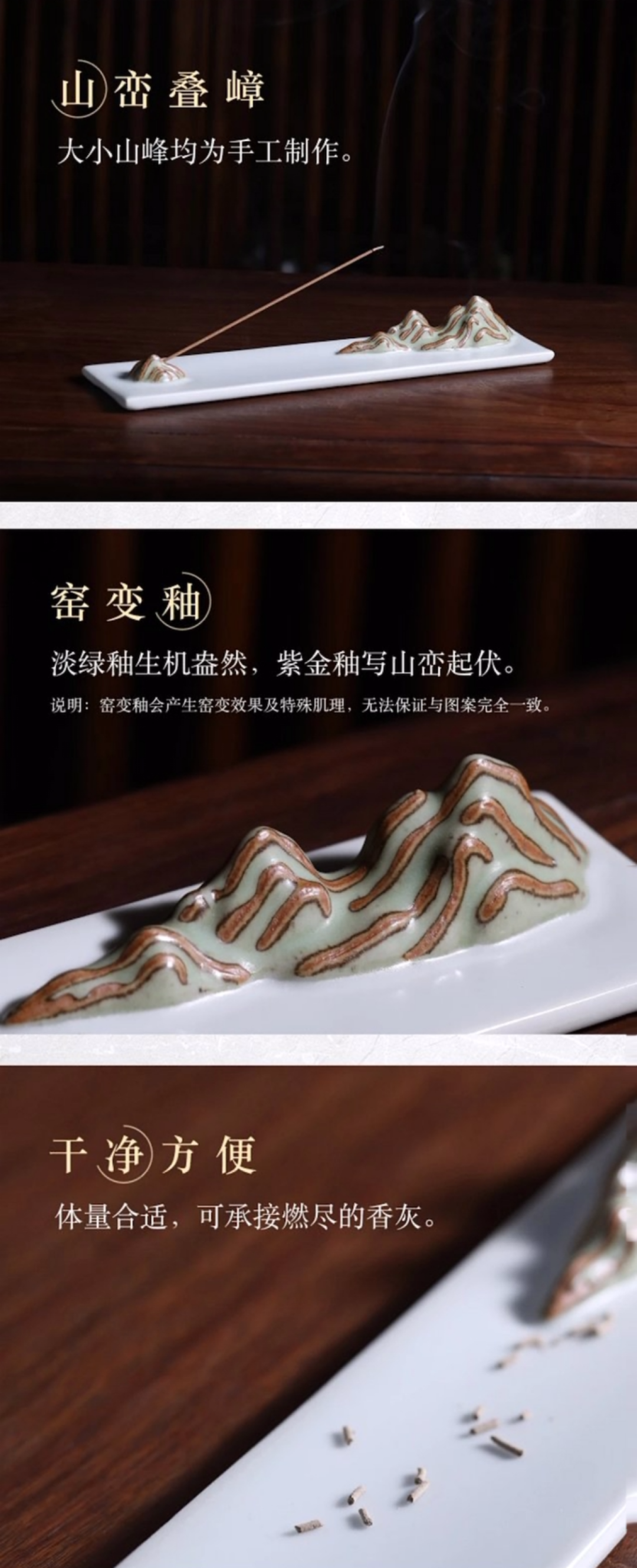 正是因此,观复博物馆原创烧造了【山水间香插】两作,焚香入境间,思绪悠然▼
