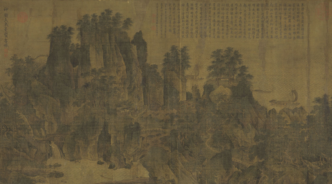 《千里江山图》是徽宗给王希孟的命题画作,正如研究者所言:“《千里江山图》不仅仅是希孟个人努力的结果,同时也代表了徽宗宫廷绘画的审美趣味”——这其中,是徽宗“丰亨豫大”审美观在山水画中的完整体现。