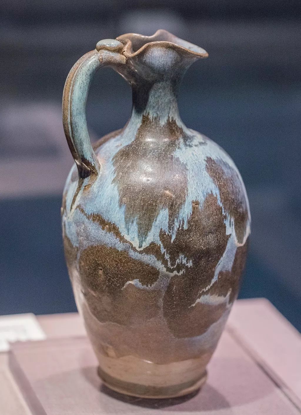 它利用撒彩或沥粉堆线法在黑釉、茶叶末釉或天蓝釉上施以天蓝或月白色斑点,作有规律或无规律的分布,变化莫测,自然生动,呈现出绚烂斑驳的艺术效果。其中以鲁山段店窑的花釉瓷质量最好,在史料中被称为“鲁山花瓷,颇有盛名。