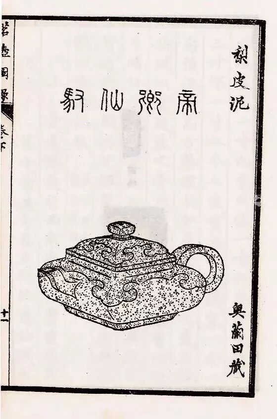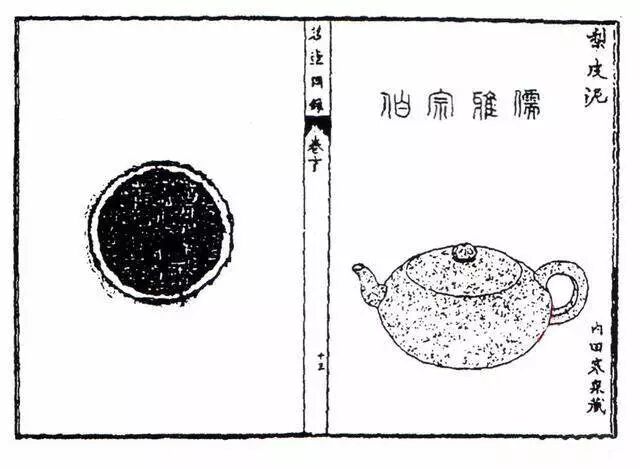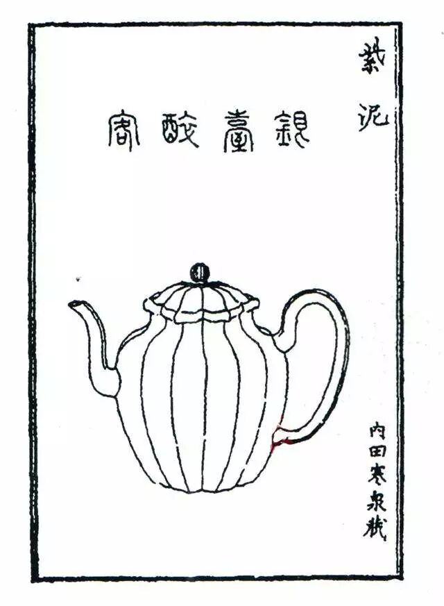 这是一本详细、完整论述中国紫砂壶的专著,文图并茂,由收藏家奥玄宝撰写。奥玄宝(1836—1897),字素养,号兰田、独飞,中国很多紫砂壶研究者都以其号称他为“奥兰田”。奥玄宝喜欢收藏紫砂壶,其在《茗壶图录》自序中谈到对紫砂壶的痴迷程度时说:“予于茗壶嗜好成癖焉。不论状之大小,不问流之曲直,不言制之古今,不说泥之精粗、款之有无,苟有适于意者,辄购焉藏焉,把玩不置……”奥玄宝的《茗壶图录》成书于1874年,全书分上、下两卷,文字部分有源流、式样、形状、流鋬、泥色、品汇、大小、理趣、款识、真赝等;图录部分参照《宣和博古图录》,将自己搜罗及朋友收藏的茶壶,以工笔白描图谱罗列成二册,收入紫泥、梨皮泥、朱泥等壶,共32品。由于《茗壶图录》写于注春居,所以32把茗壶亦称“注春三十二式”,且冠以梁园遗老、萧山市隐之类的名称,题为“注春三十二先生肖像”。15把是奥兰田的藏品,其余17把则分别藏于诸朋友家,如其中8把梨皮泥茗壶即为静嘉堂藏品。流直把环,通体以秋葵花为式,花瓣参差,向背分明,如笑如语。许氏巧手,制壶无一不竭尽智力,而兹壶精制尤穷神妙,非他工之可拟论。奥氏的选壶标准,重在壶艺,重在欣赏的感受,这比那些只知道讲究年代、款识、壶工的有名无名,而无视壶艺本身价值的人,确实胜过一筹。在《茗壶图录》凡例中,奥玄宝声明该书是以周高起的《阳羡茗壶系》和吴骞的《阳羡名陶录》为“粉本”的。早在明代后期,宜兴紫砂壶就畅销日本,日本茶道也以用中国茶具为荣,两国的茶文化交流和茶具交流日益频繁和深入。《茗壶图录》鉴证了中国茶具的独特魅力和广泛影响。高古瓷