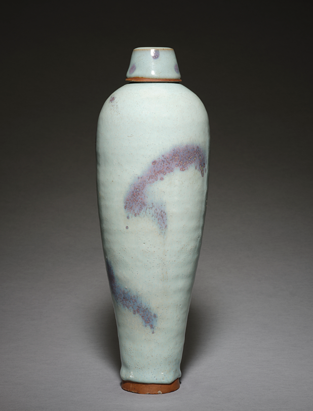 元代 钧窑月白釉红斑带盖梅瓶