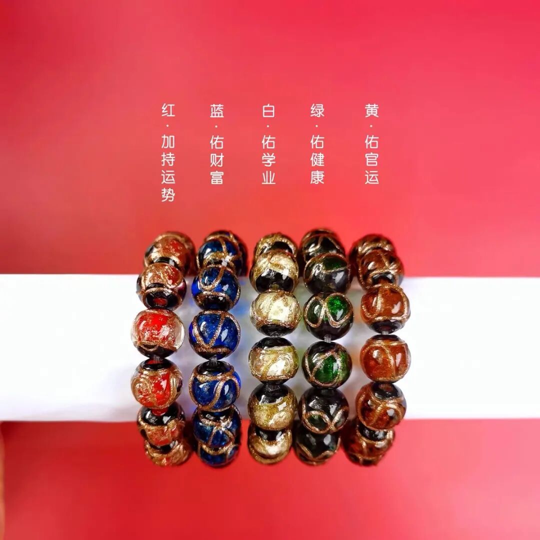 ▲(顺丰包邮)五台山 香灰琉璃 朱砂 手串 五行多彩多宝混色款琉璃乃佛家七宝之一,五台山香灰琉璃手串在烧制过程中添加初一十五香火最旺时候的佛炉余灰,混合金粉镶嵌成型。所以禅心无界,灵物有形,是求财转运灵物,值得奉请佩戴!