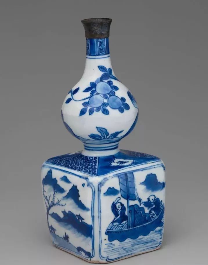 大都会艺术博物馆是美国最大的博物馆,几乎是每一个到访纽约的人必须去朝拜的艺术圣殿。作为二十一世纪奇迹之一,大都会艺术博物馆内的收藏涵盖全球,时间跨度几千年。还有什么地方可以让你在同一天里看到一座埃及陵墓,一套完整的日本盔甲,以及摆满整个展厅的文艺复兴时期绘画? 大都会博物馆位于纽约中央公园旁,博物馆占地面积为13万平方米。截至目前,共收藏有300万件展品。与英国伦敦的大英博物馆、法国巴黎的卢浮宫、俄罗斯圣彼得堡的列宁格勒美术馆(也称冬宫)并称“世界四大美术馆”。 大都会博物馆主体为哥特式建筑,全馆分占3层楼,设234间陈列室,收藏近5000多年来人类文化文明的各种文物。 大都会博物馆所收藏的中国历代瓷器陈列在二楼亚洲馆大厅四周。藏品从早期青瓷、白瓷,唐代长沙窑、三彩,宋代五大名窑,到元代青花、釉里红,明、清之际的景德镇青花、红釉、黄釉、斗彩、五彩、墨彩等等应有尽有。 【大都会博物艾佛利氏珍藏中国瓷器 1907年】 在这里几乎可以看到完整、详尽的中国瓷器史。大都会博物馆的藏瓷不只是瓷的种类全、数量多,而且大多是精品,有些甚至是稀世珍宝。 中国瓷器历史悠久,是古代劳动人民智慧和创造力的结晶。明代时期几乎是景德镇一统天下的局面,明代瓷器以景德镇青花为主,青花瓷器以传统的毛笔,以各种线条、点染、渲染来完成绘画。胎体一般都比清代厚重。在造型上,一般都显丰满,浑厚,器型线条柔和,圆润,给人以质朴,庄重之感。装饰手法上也更加复杂多样,植物、动物、文字、山水、人物、花鸟、鱼、虫等无不入画,画面豪放而潇洒,笔意酣畅而纯熟,构图疏简而高古。在大都会博物馆中,馆藏了许多明代时期瓷器,包括了大量的青花瓷器。让我们一起来看看大都会博物馆都收藏了哪些青花瓷器吧! 明隆庆 景德镇窑青花诗文碗 H 6 cm,Diam 11.9 cm 明晚期 景德镇窑青花鹿马山水富士山型盘 H 5.3 cm,W 25.1 cm,L 28.5 cm