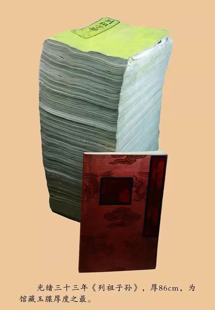玉牒记载的内容始自清兴祖福满,按所收支系可分为宗室和觉罗两种,宗室玉牒记录清景祖觉昌安、显祖塔克世及显祖后裔;觉罗玉牒记录兴祖的其他子孙,也就是显祖的亲兄弟和同一祖父的堂叔伯各房。[5]按长宽尺寸又可分为大玉牒和小玉牒两种,前者的正本长度在81-90厘米之间,宽度在45-52厘米之间;后者正本长度在40-46厘米之间,宽度在22-30厘米之间;大、小玉牒均有副本,尺寸与正本相类;另有备查本一份,尺寸略大于小玉牒正本。![]()