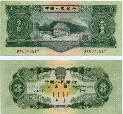 ▌第二套人民币“苏三币”叁圆券(正、背)
