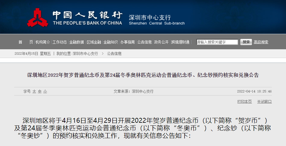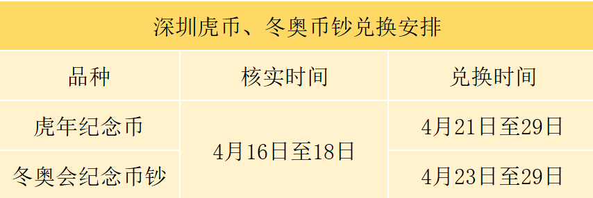 今天,中国人民银行深圳中心支行发布公告,将于4月16日-4月29日开展虎年纪念币和冬奥会纪念币钞的预约核实和兑换工作。