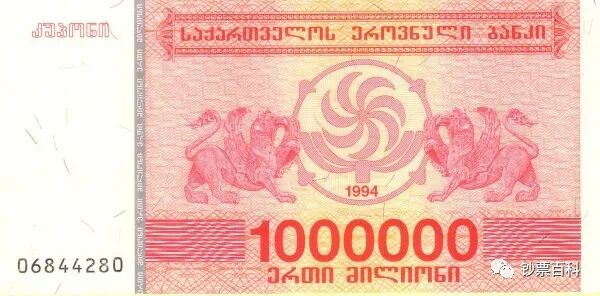 ▲格鲁吉亚1994年100万Kuponi纸币(Pick 427)