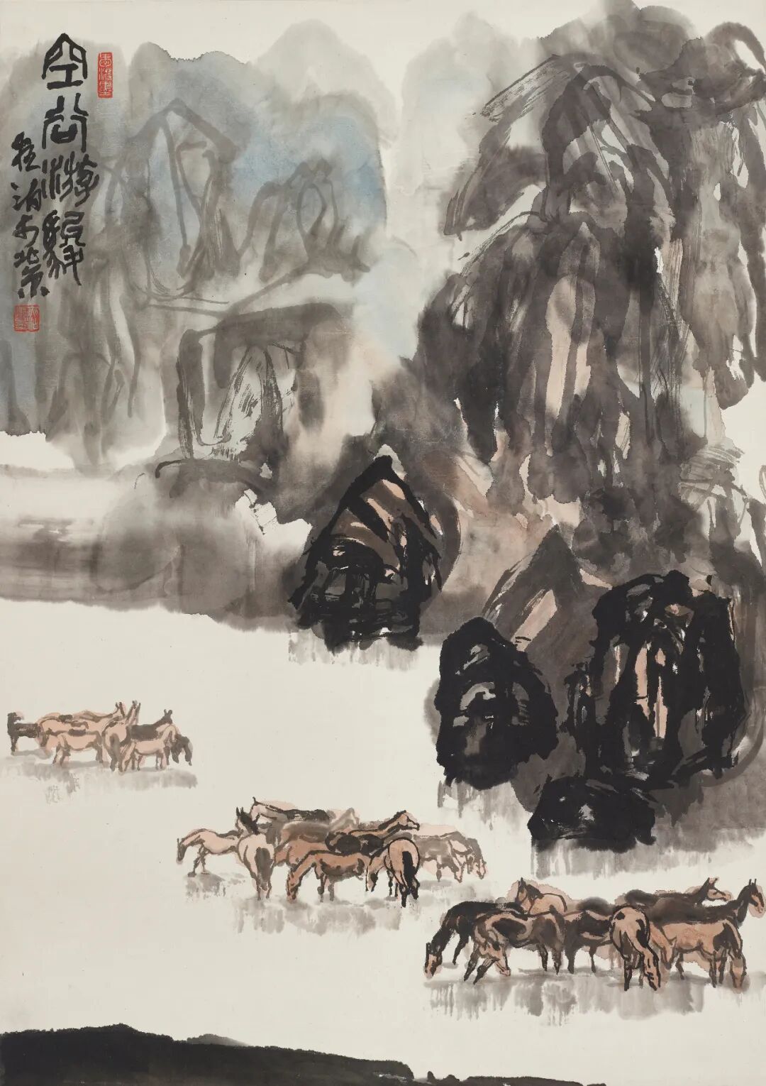 中国书画在近现代得到了长足的发展,涌现出了一大批书画大师。他们具有深厚的传统功底和文化底蕴,同时也擅长吸收西方艺术的精华,中西合璧,为我所用。所以他们开了中国画的新风,创作出了许多经典之作,使得近现代画坛熠熠生辉,光彩夺目。荣宝斋是百年书画老店,历经三百余年的发展,历程璀璨。直至今日,更是在时代中引领艺术市场潮流,是艺术市场的风向标。荣宝斋不光是积淀丰厚,更是“书画家之家”。“以文会友、荣名为宝”是企业长期发展的座右铭,同时以独到的艺术分辨力把好的作品推到市场,从而推动了整个艺术产业的时代发展。而今,在传统书画艺术市场蓬勃发展的时代背景下,书画收藏逐渐也回归到了良性的发展状态,起到了传承文化经典,美化人民生活的积极作用。荣宝斋多年来推出了无数的书画家,使他们的作品传播海内外,进入到了千家万户。同时,荣宝斋也积累了许多书画名家的精品力作。我们近期在整理库存作品时就发现了许多艺术精品。这里面不光有像吴昌硕、齐白石、陈半丁、林散之、李苦禅、李可染、启功、黄胄等大家之作,也有一大批具有时代艺术精神的名家之作。