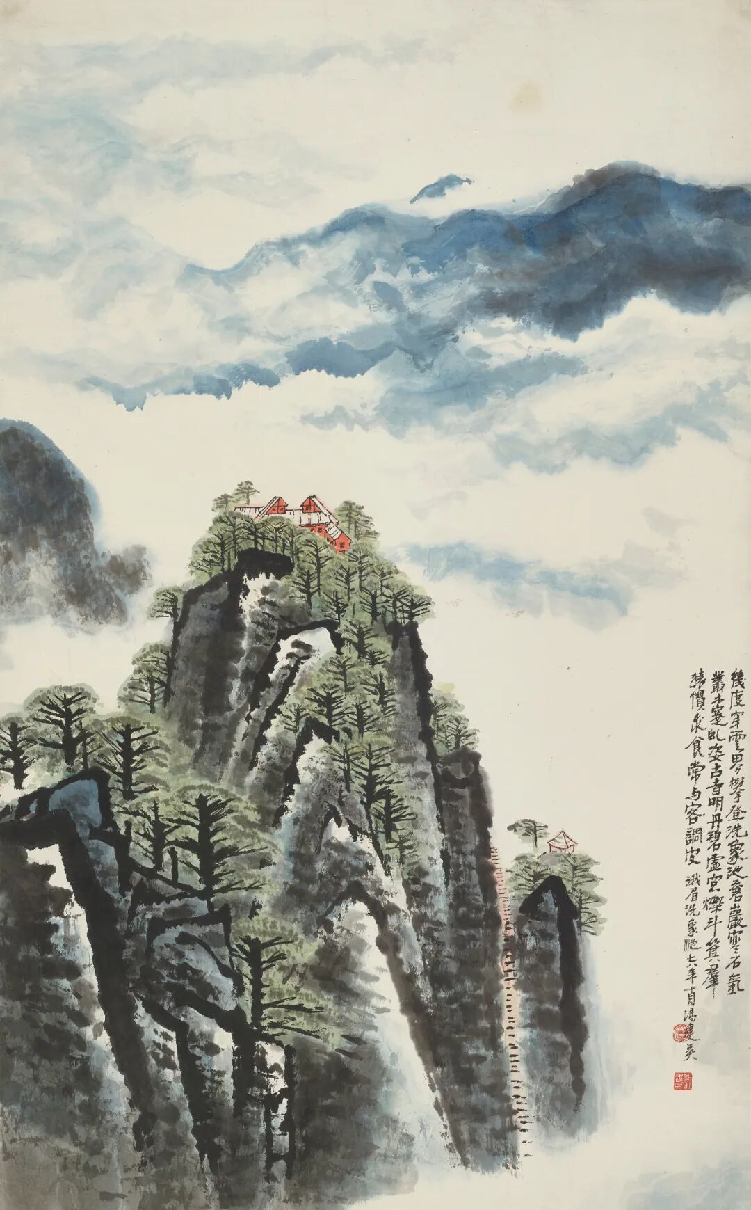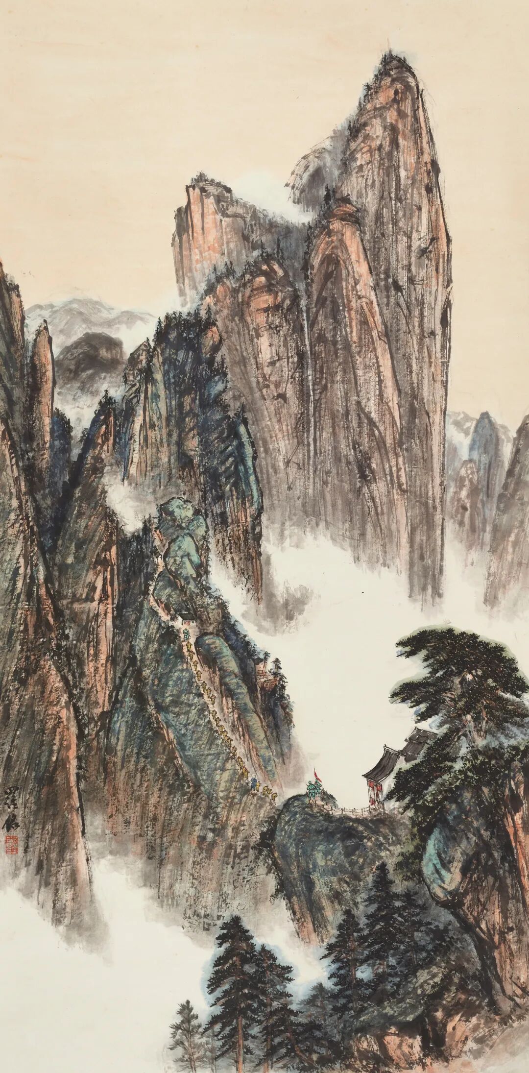 何海霞(1908—1998)名瀛,字海霞,以字行。北京市人。早年从师张大千学画,后调入陕西美协从事专业创作,为“长安画派”代表画家之一。1983年任陕西省国画院副院长,不久调北京中国画研究院工作。擅长山水,亦擅花卉。