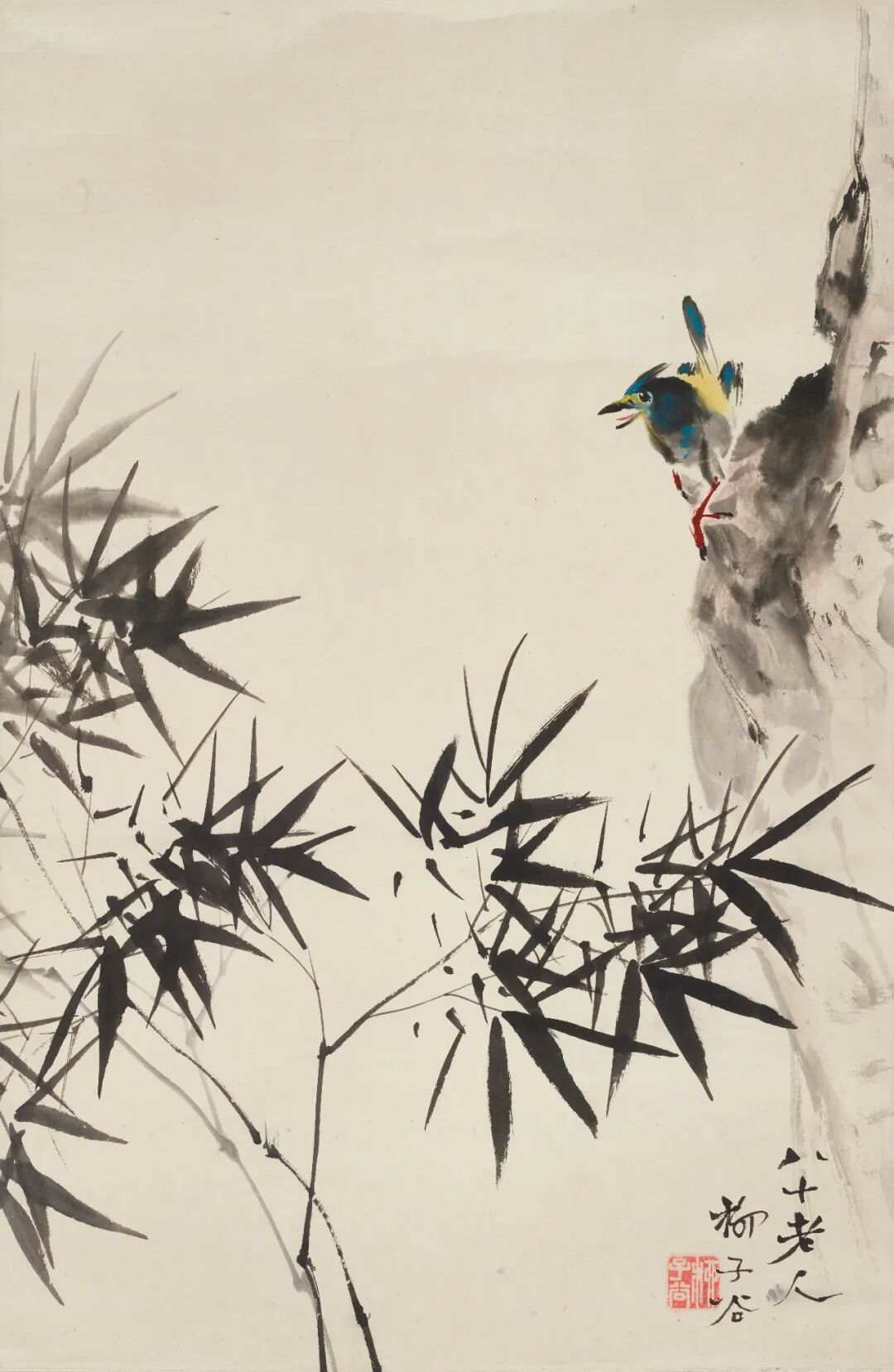 竹石栖鸟
