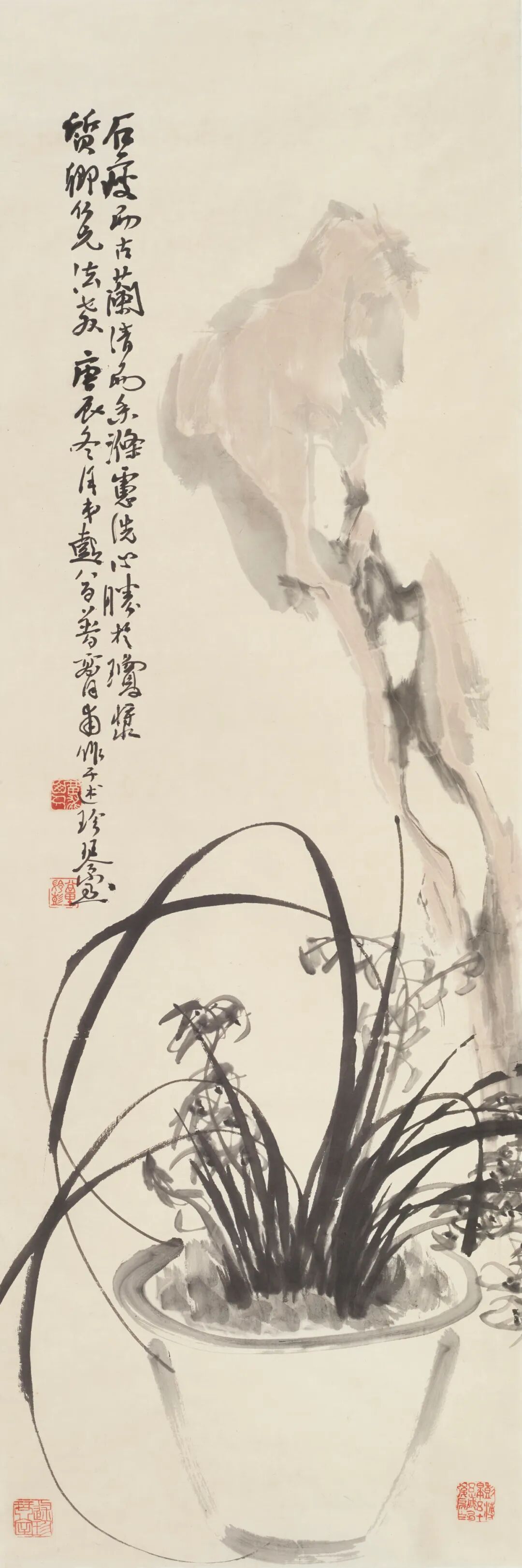 中国书画在近现代得到了长足的发展,涌现出了一大批书画大师。他们具有深厚的传统功底和文化底蕴,同时也擅长吸收西方艺术的精华,中西合璧,为我所用。所以他们开了中国画的新风,创作出了许多经典之作,使得近现代画坛熠熠生辉,光彩夺目。荣宝斋是百年书画老店,历经三百余年的发展,历程璀璨。直至今日,更是在时代中引领艺术市场潮流,是艺术市场的风向标。荣宝斋不光是积淀丰厚,更是“书画家之家”。“以文会友、荣名为宝”是企业长期发展的座右铭,同时以独到的艺术分辨力把好的作品推到市场,从而推动了整个艺术产业的时代发展。而今,在传统书画艺术市场蓬勃发展的时代背景下,书画收藏逐渐也回归到了良性的发展状态,起到了传承文化经典,美化人民生活的积极作用。荣宝斋多年来推出了无数的书画家,使他们的作品传播海内外,进入到了千家万户。同时,荣宝斋也积累了许多书画名家的精品力作。我们近期在整理库存作品时就发现了许多艺术精品。这里面不光有像吴昌硕、齐白石、陈半丁、林散之、李苦禅、李可染、启功、黄胄等大家之作,也有一大批具有时代艺术精神的名家之作。