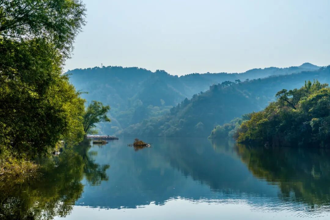 小溪之滨,能听到鱼儿跳水的声音,纵横交错的树林,静候着白鹤飞回。几片闲散的浮云哟,总难汇成小雨,只好贴着那碧绿的山腰,缓缓飘飞。