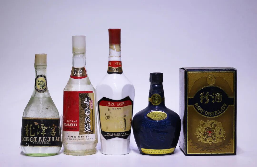 1、(1)约80年代:龍潭窖 1瓶;贵阳大曲 1瓶;安酒 1瓶。(2)1991年 珍酒 53度1瓶。