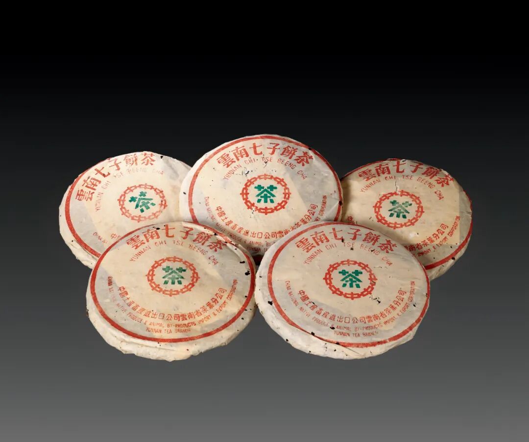 八十年代厚纸8582青饼是80年代七子饼中,极具代表性的茶品之一。1985年开始生产的一款出口香港的定制茶,茶品的唛号就称之为8582。此茶干仓存放,茶饼外观油亮润泽呈红褐色,茶汤偏深栗色,樟香味十足,水性柔软顺滑。是普洱茶爱好者收藏之佳品。
