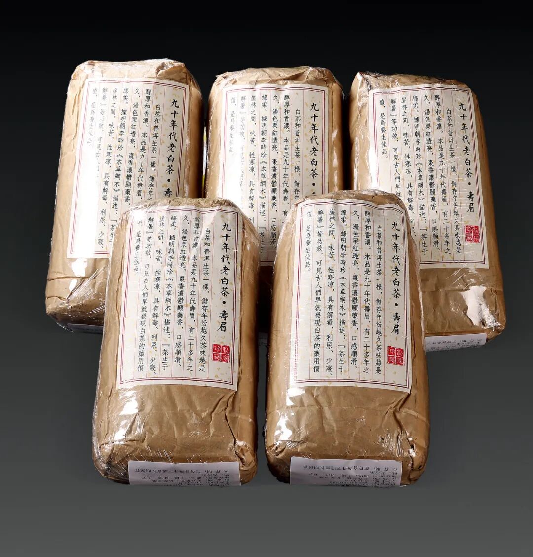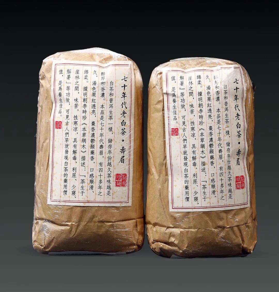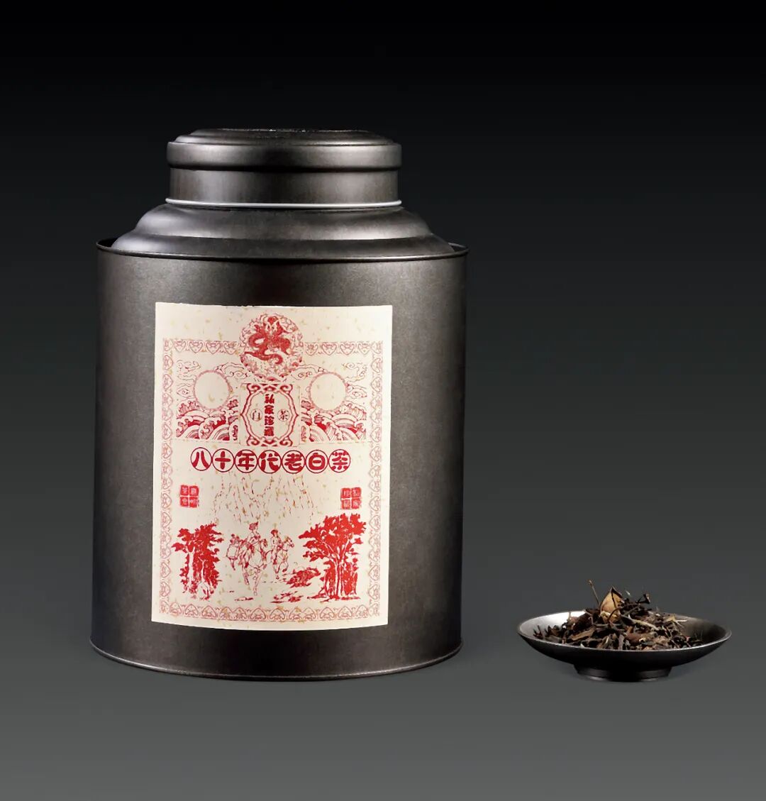 六零年代老白茶,散茶为60年代末期至70年代初期,后期新包装。此款老白茶,存量稀少,经五十余年陈化,寒性完全褪去,茶性温和,茶汤呈酒红色,甘甜厚滑,杯底药香馥郁,煮后药香更显,具有极高的品饮价值。
