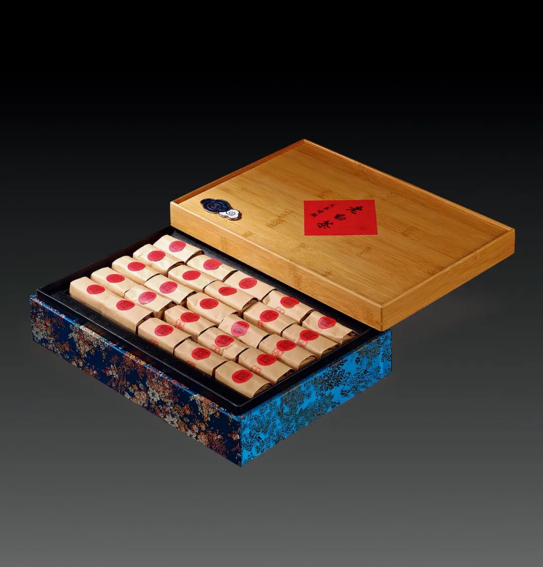 红印圆茶也被称之为现代普洱贡茶,始创于1940年的佛海茶厂。大红印普洱圆茶采用易武正山优质的茶青制成,外形肥硕,条索饱满,颜色栗红,茶面油光,茶汤透红厚酽,药香味十足。红印普洱圆茶优良的品质使其成为“可以喝的古董”。本品为五十年代大红印品鉴装,经过近七十年漫长陈化,散发着迷人陈韵,入口绵滑,药香十足,是普洱茶收藏者们奢求珍藏的茶品。