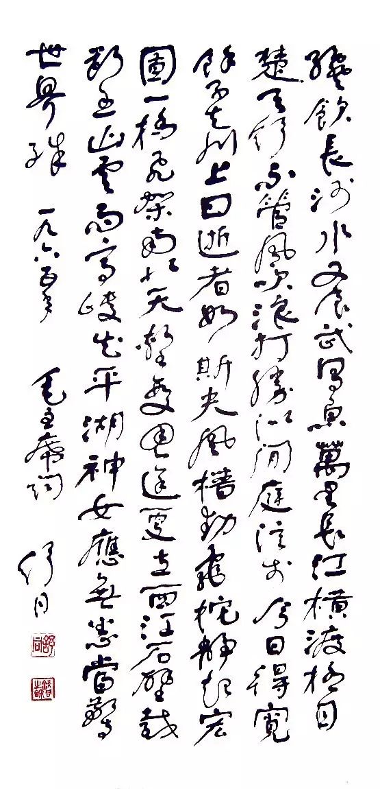 毛泽东点燃一支烟,接着说:“我喜欢收藏你的字。有人说舒体字是‘七分半书’,即楷、行、草、隶、篆各取一分,颜、柳各取一分,何绍基取半分。也有的书法家评价你的字体风韵是‘沉雄峭拔,恣肆中见逸气,忽似壮士如牛,筋骨涌现。’这些我都同意。”