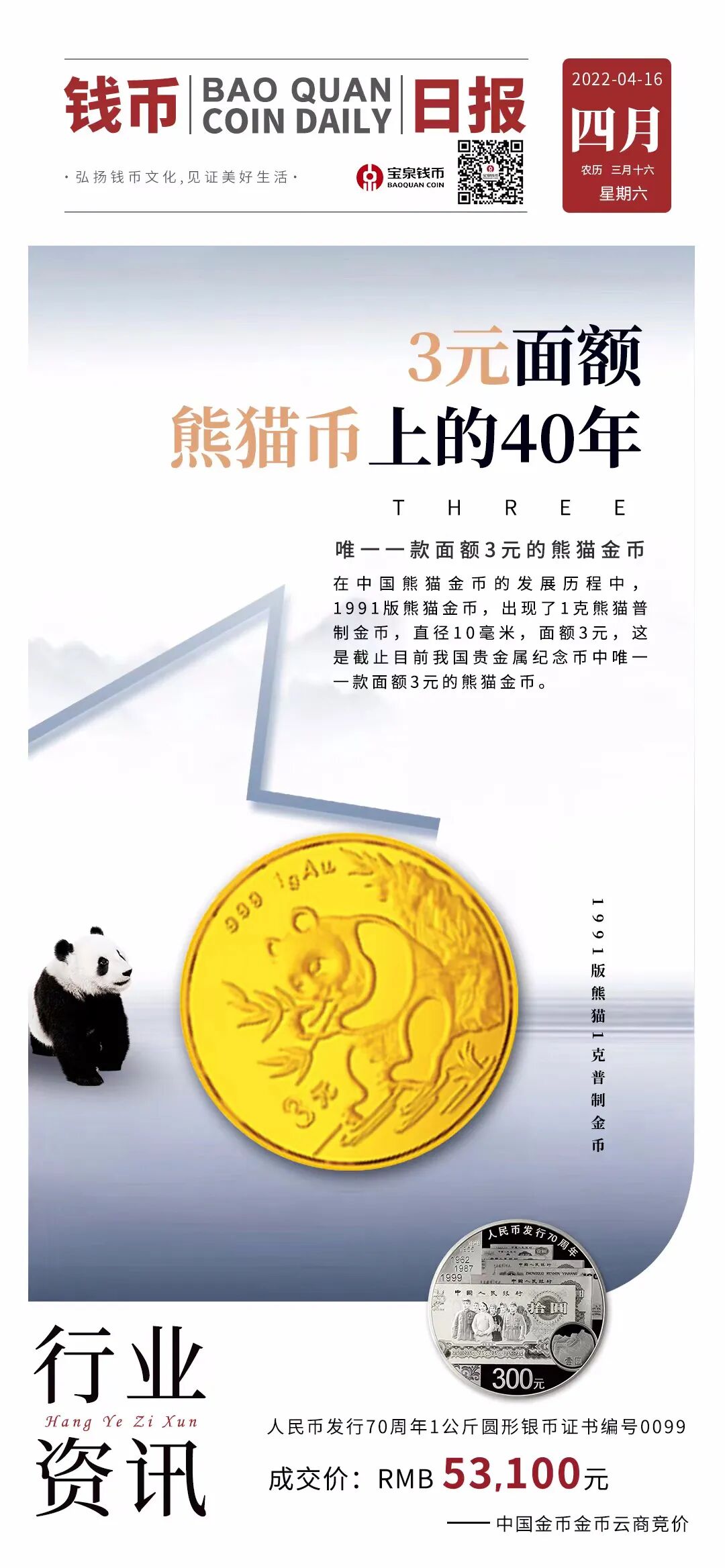 【钱币日报】熊猫币上的40年——3元面额