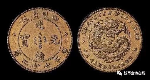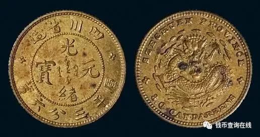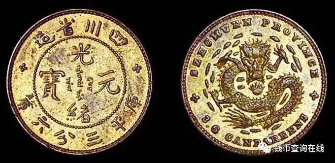 ⊙简介:1898年四川省造光绪元宝库平三分六厘银币黄铜样币,直径:15.5毫米,原包浆,满龙鳞,品相难得,完全未使用品。