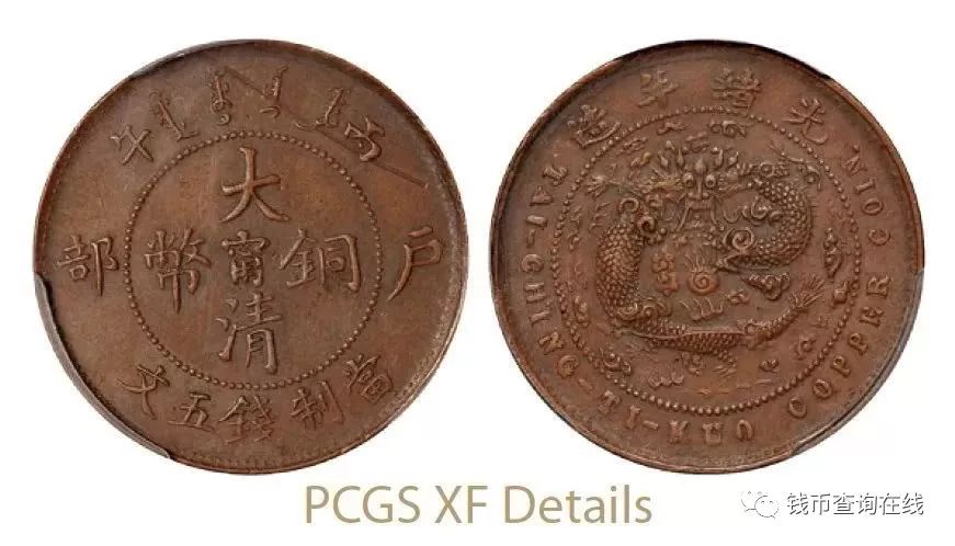 ⊙简介:1906年丙午户部大清铜币阳“宁”五文试铸红铜样币,大眼龙版,国内权威铜元目录图片实物均为此件,例如:周沁园、李平文著《中国机制铜元目录》第128页图片KN.46号,级别评定为2级;段洪刚著《中国铜元谱》第51页图片0182-江南009号,中国铜元著名珍品,极为珍罕,PCGS XF Details,目前入盒者仅此一枚。