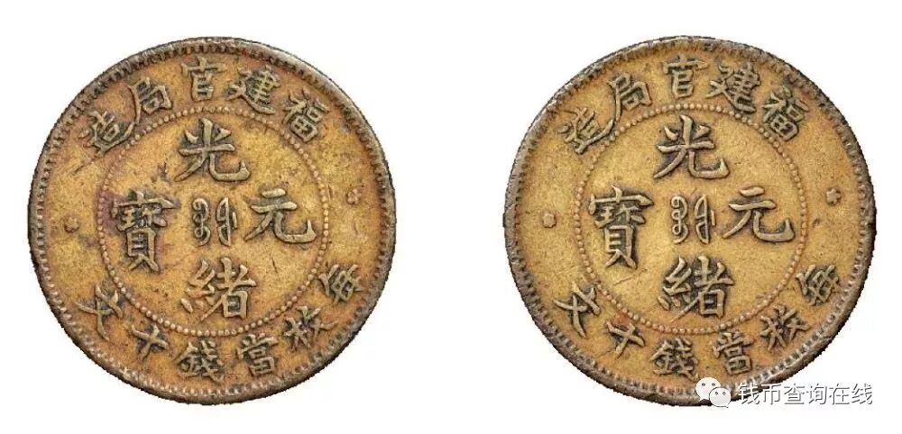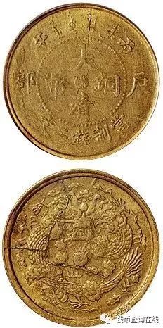 ⊙简介:1902年福建官局造光绪元宝当十文黄铜样币,合背试打,马定祥旧藏,极为罕见。