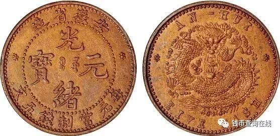 ⊙简介:1902年江苏省造光绪元宝二十文飞龙黄铜样币, 极美品。