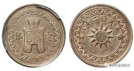 民国二十八年(1939年),云南省造币厂参考中央造币厂的布图壹分、贰分铜元形制,制造了布图壹仙、贰仙黄铜元,以往此币常被坊间或钱币书籍误认为“广东韶关”或“广西”所造。
