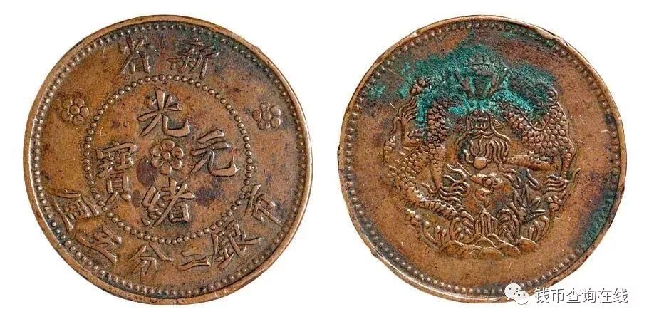 ⊙简介:清代新疆省造新省光绪元宝市银二分五厘铜样币一枚,罕见,极美品。