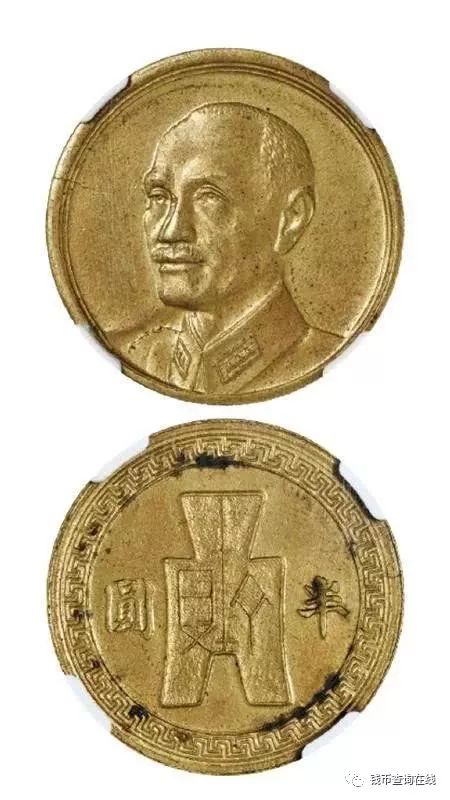 ⊙简介:民国三十八年上海中央造币厂嘉禾图“金圆币”贰钱伍分单面试铸铜样币一枚,黄铜质,光边,为国民政府在大陆时期筹备发行的最后一种“金圆”贵金属币试铸样品,极为少见,PCGS SP63金盾。