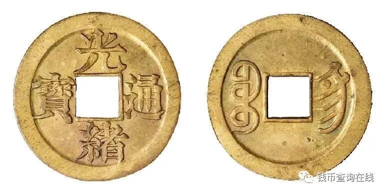 ⊙简介:四川省造光绪元宝库平三分六厘黄铜样币一枚,完全未使用品。