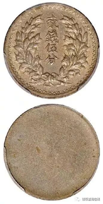 ⊙简介:民国十年广西省造贰毫银币铜样币,铜光极好,品相完美。