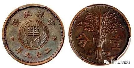 ⊙简介:民国二十九年华兴银行壹分铜样币, 未发行, 铸造极少, PCGS AU58。
