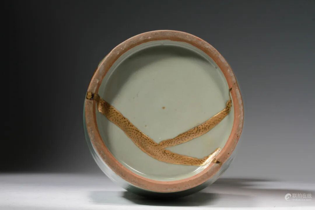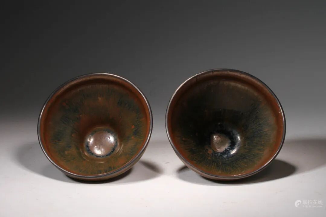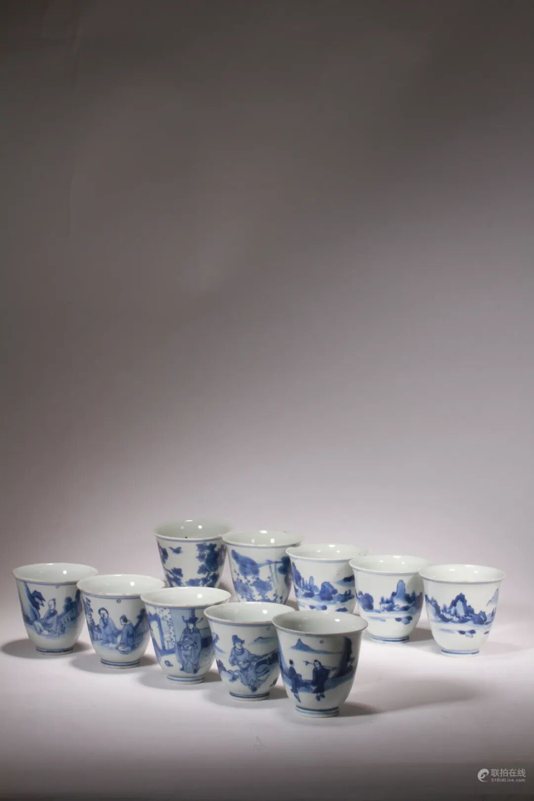 尺寸:H 14cm,D 14.5cm;H 16cm,D 15cm这两件天目茶碗,束口,碗口包银边,斜腹下微收,矮圈足。碗壁内外通体施厚釉,釉面莹润厚实,密布金黄色兔毫纹,器型规整大气,是天目茶碗的典型特征。另附古漆莳绘盏托,精致华美。凤耳瓶是龙泉窑特有器物,也是南宋龙泉窑青瓷中的经典瓶式之一。凤耳瓶传世数量较多,两岸故宫博物院等国内外多个文物机构均有典藏。由于它的样式符合日本禅宗的审美思想,因此在日本备受喜爱。自古以来,日本对于产自中国的龙泉青瓷就有着特殊的偏爱,对于不同的龙泉青瓷,日本人给予了自己的命名,如“飞青瓷”“砧手”“天龙寺手”等。在日本公私美术馆和财团藏购的中国古陶瓷中认定的八件“国宝”级文物中,有三件龙泉青瓷,其中一件便是宋代龙泉凤耳瓶。其原为日本皇宫所藏,后西天皇敕铭“万声”,现在被日本久保惣记念美术馆收藏。这个名字出自江户时代的诗句“捣月千声又万声”,意思是一拿出来就获得万口赞誉的意思,足见在日本民众心目中的地位。日本还有一件尺寸略小于万声的“千声”,被定为重要文化财,现藏于日本阳明文库。本器形制与日本国宝万声、及重要文化财千声一致,浅盘口,筒形长颈,折肩,圈足,筒腹近足处微敛,颈侧附两凤耳,耳有穿孔。整器造型精准,形制比例恰到好处,盘口不大不小,凤耳写意但塑形精巧细致,富有灵气。盘口与斜肩的弧度则将颈身两段直线造型巧妙连接,腹部线条有着自然微妙的弧度,直中见曲,富有变化。器身因有窑裂而被视若珍宝的日本藏家用漆器金缮,通体施粉青色釉,釉层较为肥厚,釉质润泽,光敛内蕴,符合宋人的审美。整器端庄隽秀,线条优雅,典雅高贵,观之若谦谦君子,令人过目难忘。刀马人物图是瓷器的一种装饰纹样,常常以戏曲小说和历史战争故事作为题材,主要描绘战争或习武场面的人物、坐骑、弓刀。其源于元代,兴于明末清初,盛于康熙时期,至雍正、干降时衰落。刀马人图瓷器画面充实、饱满、鲜艳,极富生动性,具有很高的艺术观赏价值和收藏投资价值。本件拍品盘口,束颈,圆鼓腹,圈足外撇。在白釉地上以五彩分上下三层绘制人物故事。画面层次分明,疏朗有致,人物形神俱佳,形象生动逼真,颇具意趣。是一件具有很高艺术价值的收藏品。另外附有共箱及收藏资料,曾被日本著名收藏家古贺健藏先生收藏。古贺健藏,昭和6年(1931年)生于大阪,曾在关西学院大学修习美术史,其主要研究方向为茶道文化,继承了古贺竹世堂三代的名号。曾担任野村美术馆主查、日本陶瓷协会理事、国立博物馆文化财评价委员等职务。著有《茶的裂地》、《茶道用语辞典》、《原色茶道大辞典》、《茶道美术鉴赏辞典》、《落款花押辞典》等著作。作为明清时期陶瓷装饰纹样之一,灵芝纹常常被人们视为祥瑞的美好象征,寓意高节不凡而长寿。嘉靖时期灵芝纹器物较前朝更为多见,斗彩、青花、五彩俱全,表现形式有折枝、缠枝,还有团花形式。画法虽不尽相同,但灵芝纹路饱满,叶曼穿插有序。此件青花灵芝纹盘敞口,圈足,造型古朴舒展,胎釉坚密温润,器表老气自然。盘心及外壁绘有团花灵芝并缠枝花卉图案,花头饱满,层次清晰,构图繁而有序。釉面笔触细腻,青花发色典雅。底部以青花书款识「大明嘉靖年制」六字双行周边双圈款。此件青磁花卉纹碗是明初的作品,口径15厘米,撇口,弧腹,下承圈足,胎底正圆,碗心刻划花卉纹样,内外壁碗沿下刻莲瓣花纹,花瓣瓣面较大,弧线轮廓柔和清淡,线条优美流畅。整碗器型清晰明朗,造型沉稳端庄。胎体厚重,通体罩施青釉,釉色光润似玉,翠色怡人。底有涩胎一周露火石红,留有垫烧痕。其工艺精巧,刻花精美,保存完整,简朴优雅又不失大气,视觉上别有一番生动的韵致。抱月瓶外形最早源自宋元时期流行于西夏的陶制马挂瓶,左右双系,用以挂于马鞍之侧,极具民族特色。抱月瓶以明永宣时期最负盛名,清康熙、雍正两朝多有仿制。此器圆口直颈,器型扁圆,颈腹间附波浪型双耳,瓶身造型饱满丰盈,形若满月,端庄隽秀。胎质细密,胎体白净,通体施朱红釉,釉色明亮肥润,瓶身暗刻花卉纹。描绘细致,工艺精湛。高足杯也称马上杯,它同于高足碗,上为碗形,下有高柄。高足杯也称把杯,外观美丽,实用方便,是陶瓷中的典型器物。明代高足杯向小型和精巧演变,由于崇祯年间战乱频繁,国势衰退,景德镇官窑基本处于停烧状态,但民窑生产仍然兴旺。不少精品颇受收藏爱好者喜爱。本器撇口,弧腹,高足。施白釉,光润柔和。胎质细腻,青花呈色幽倩淡雅,杯体主体纹饰为岁寒三友,松、竹、梅形态各异,松之常青不老,竹为君子之道,梅谓冰清玉洁,意趣盎然,寓意吉祥。杯足亦有花卉纹饰,随性流畅。整体造型典雅,纹样构图和谐,是一件难得的佳品。Lot 2144 明 青花山水人物故事图纹铃铛杯 10点一组